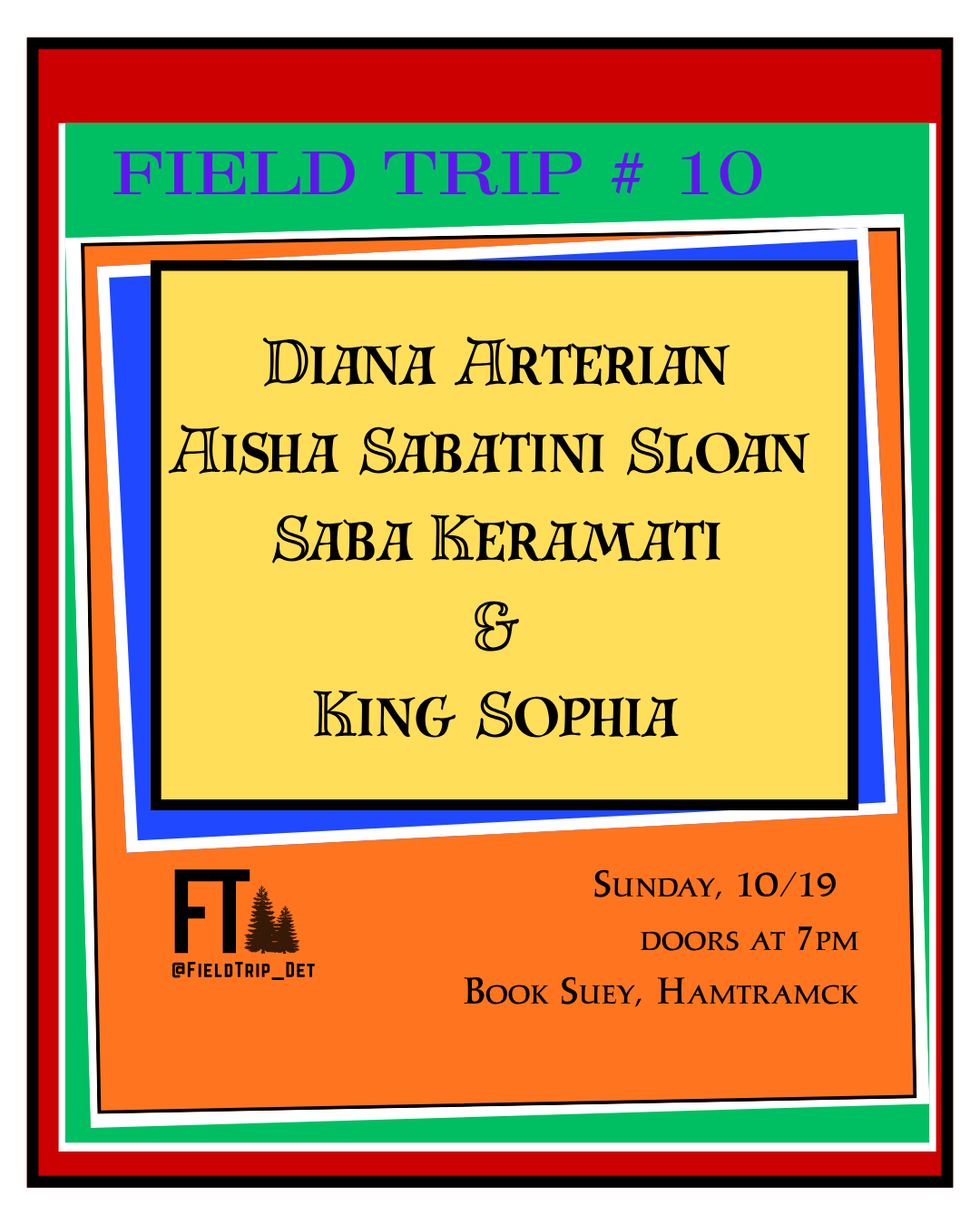 FIELD TRIP is a reading series based in Hamtramck, Michigan. Each trip features a visiting writer paired with local Detroit talent. Hosted in collaboration with Book Suey, the co-op bookstore and community space.